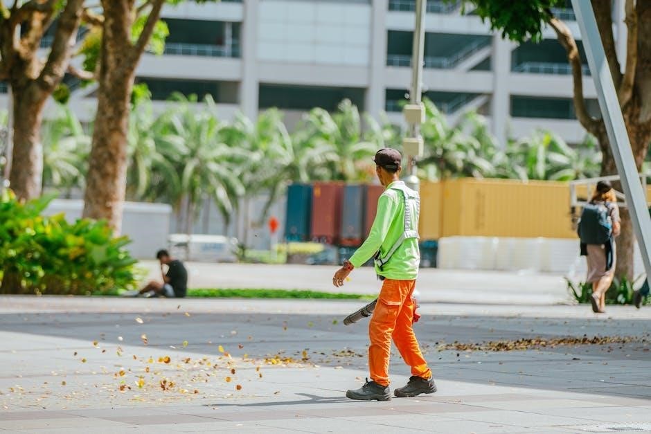 Before starting‚ thoroughly inspect the work area‚ removing any objects like stones‚ toys‚ or hoses that could become projectiles. Never operate the snow blower near roadways or pedestrians. Maintain a firm grip on the handles and be mindful of the discharge chute’s direction‚ ensuring it’s pointed away from people and property.